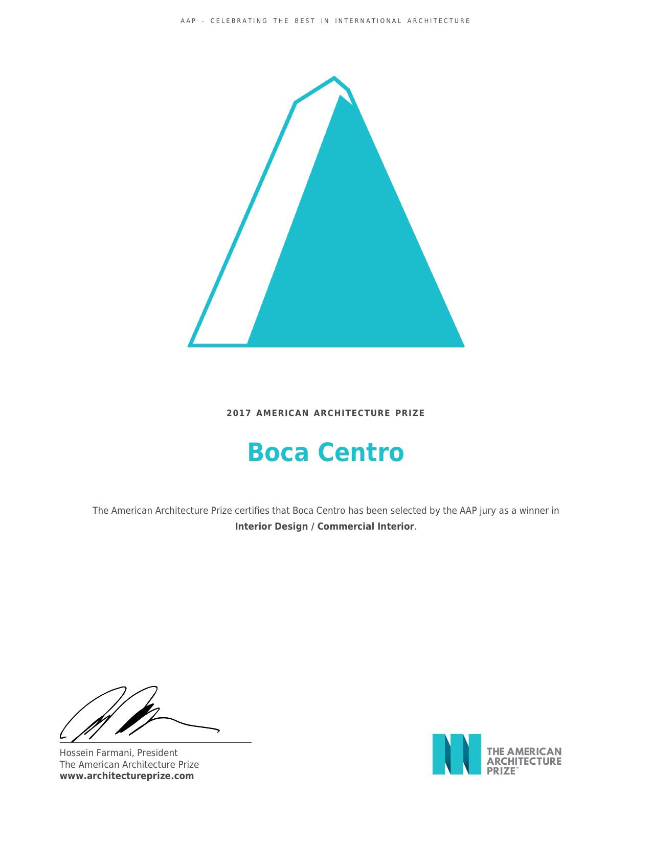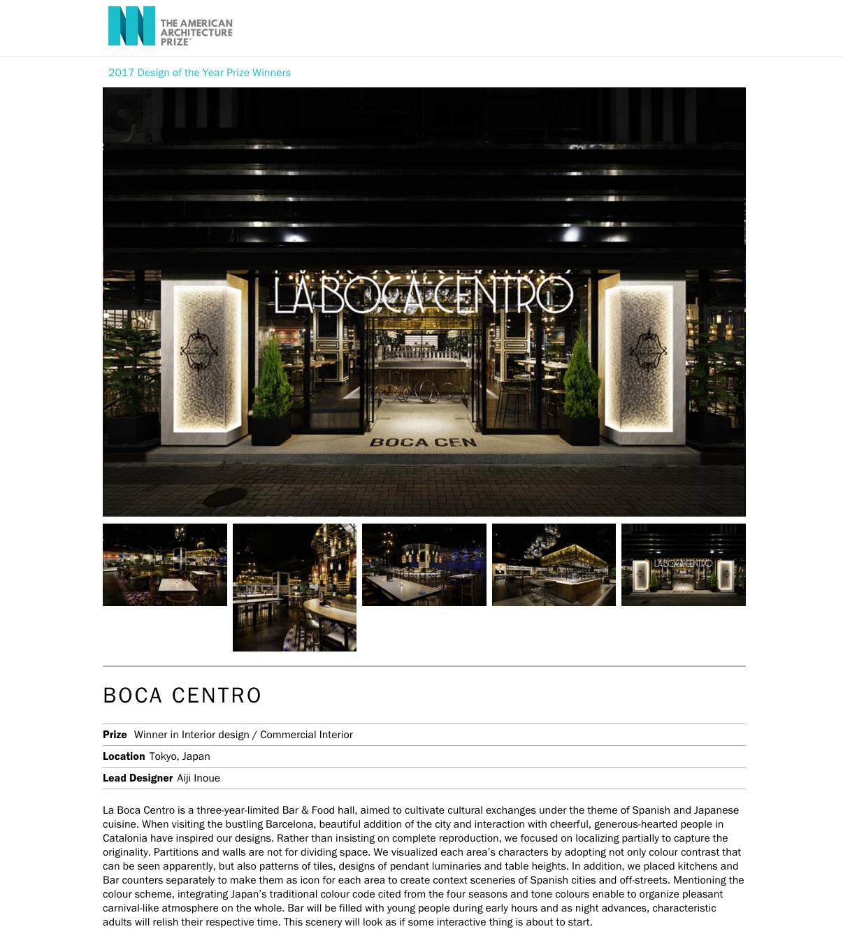 La Boca Centroがアメリカ(ニューヨーク)の「American Architecture Prize 2017」にてWINNERを受賞しました。