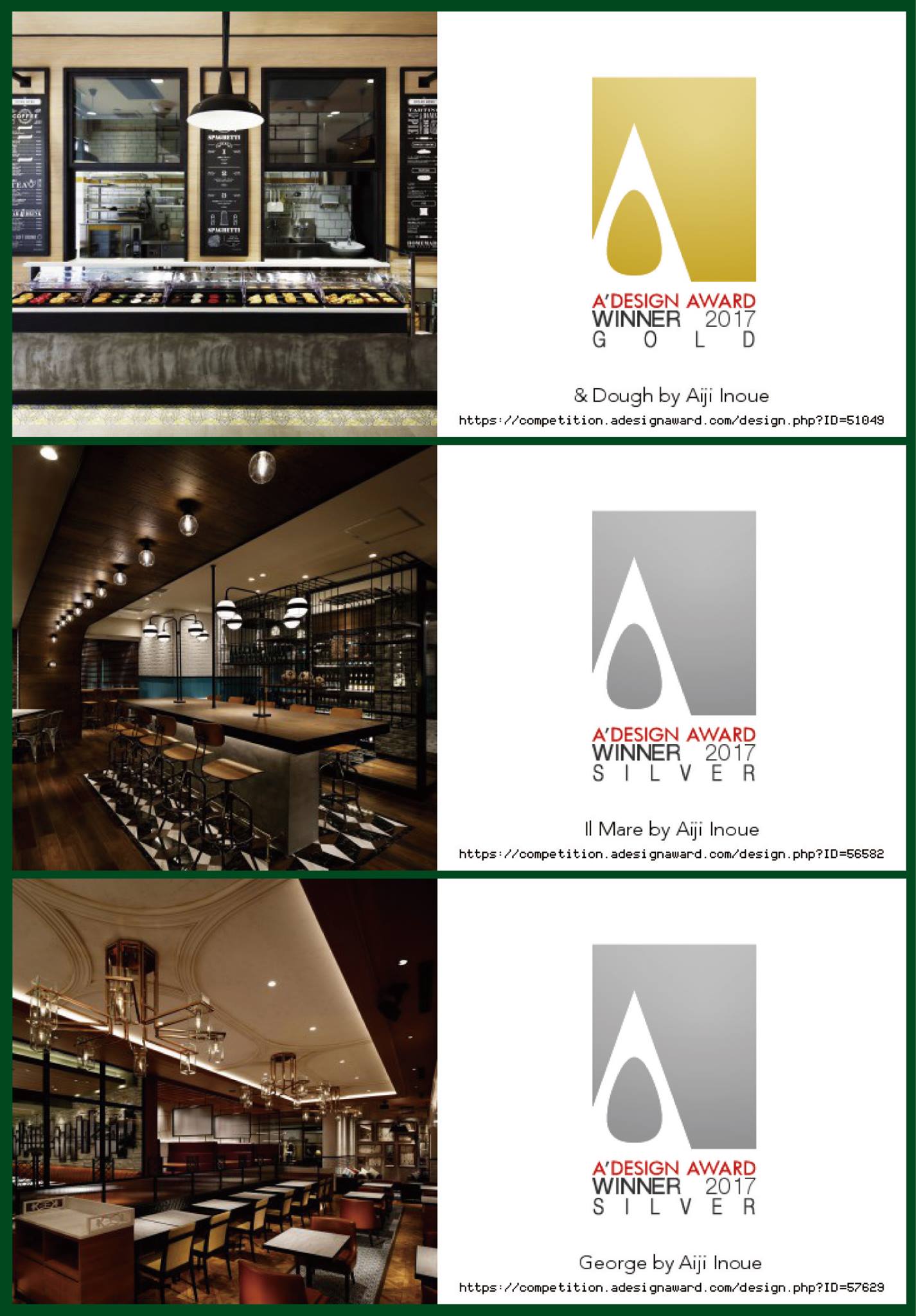 弊社デザインの3店舗(& Dough、イルマーレ横浜、George青葉台)が同時に「A' DESIGN AWARD 2017」にて受賞しました。