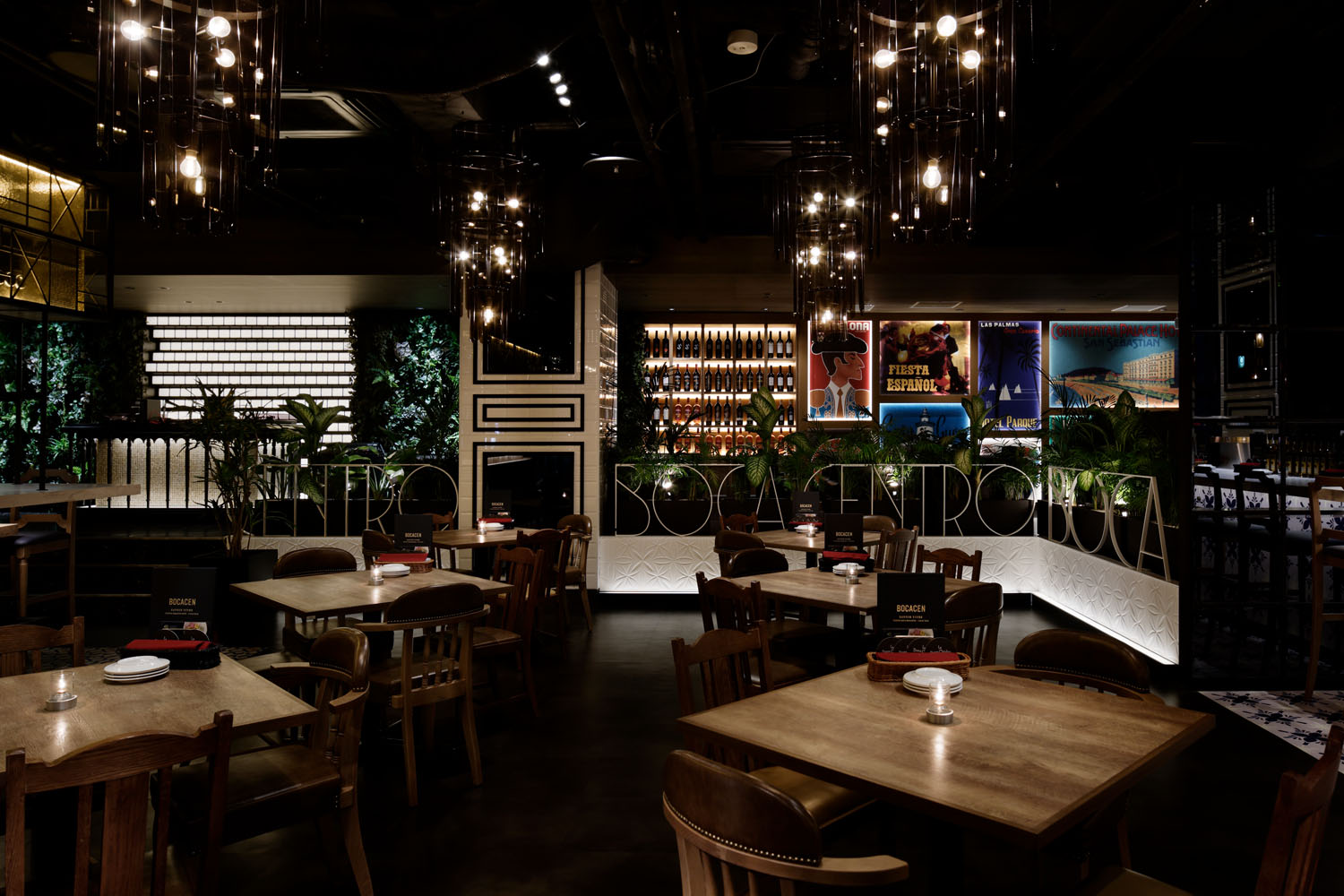La Boca Centro is a three-year-limited Bar & Food hall, aimed to cultivate cultural exchanges under the theme of Spanish and Japanese cuisine. When visiting the bustling Barcelona, beautiful addition of the city and interaction with cheerful, generous-hearted people in Catalonia have inspired our designs. Rather than insisting on complete reproduction, we focused on localizing partially to capture the originality.