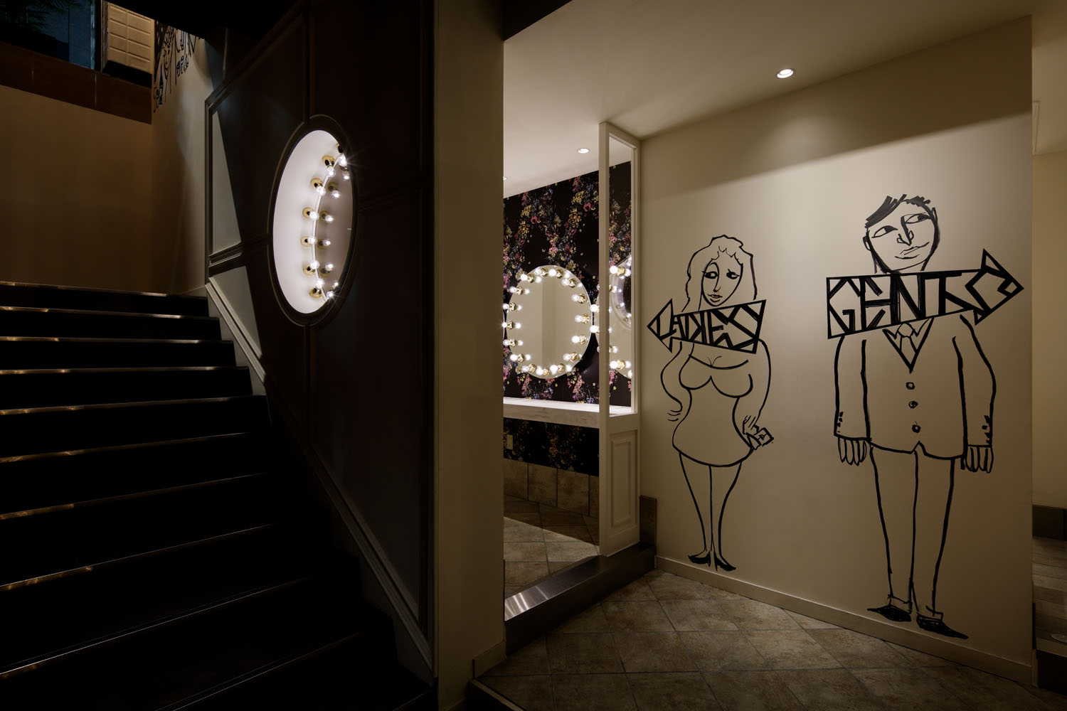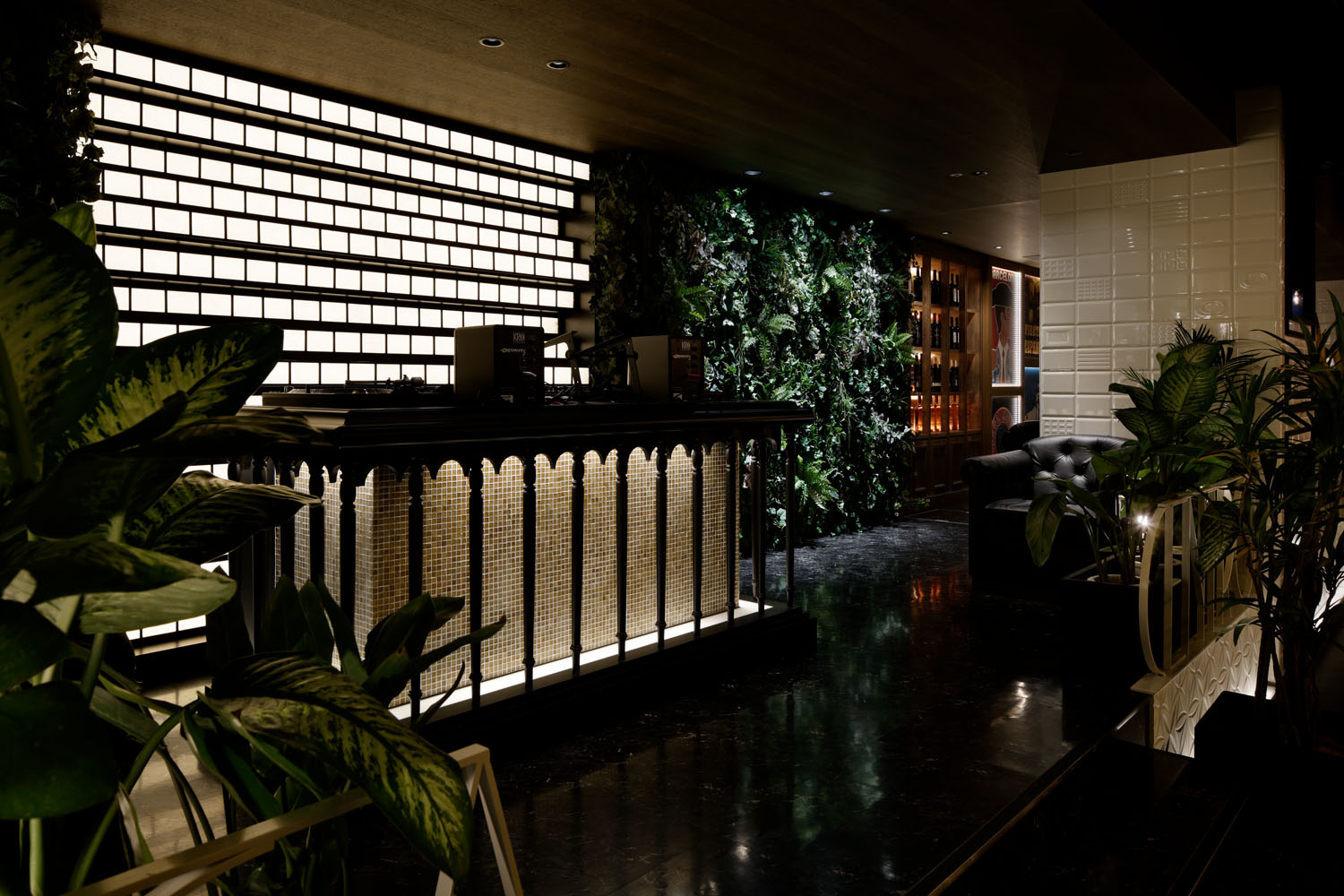 Mentioning the colour scheme, integrating Japan’s traditional colour code cited from the four seasons and tone colours enable to organize pleasant carnival-like atmosphere on the whole. Bar will be filled with young people during early hours and as night advances, characteristic adults will relish their respective time. This scenery will look as if some interactive thing is about to start.
