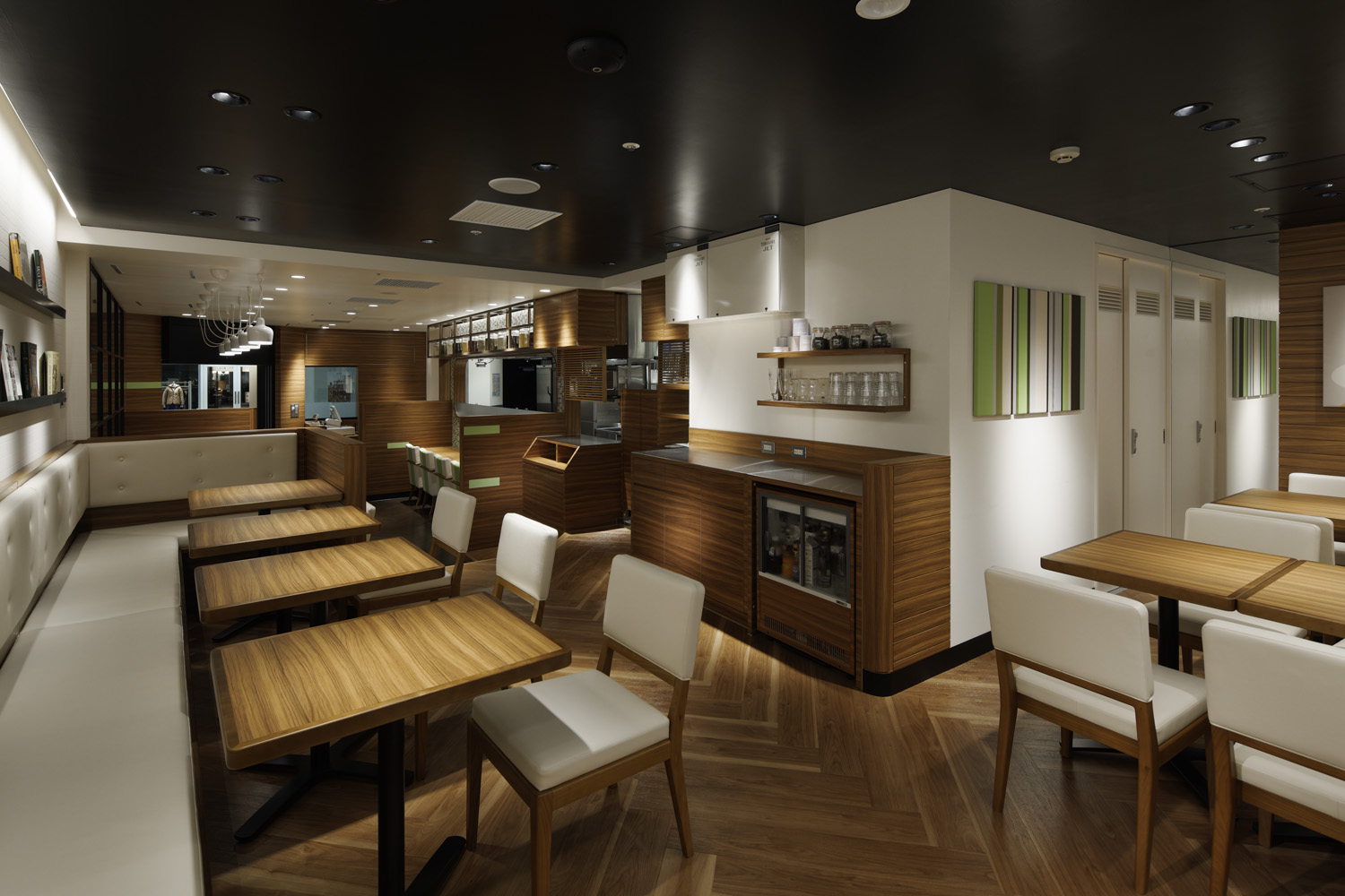 It mainly targets to young women generations that give big influence in food trends. So, we made the furniture custom-designed, by rounding off the corners of the tables in order to give soft impression. And for the chairs, we paid extra consideration to comfort and the size of the seats.