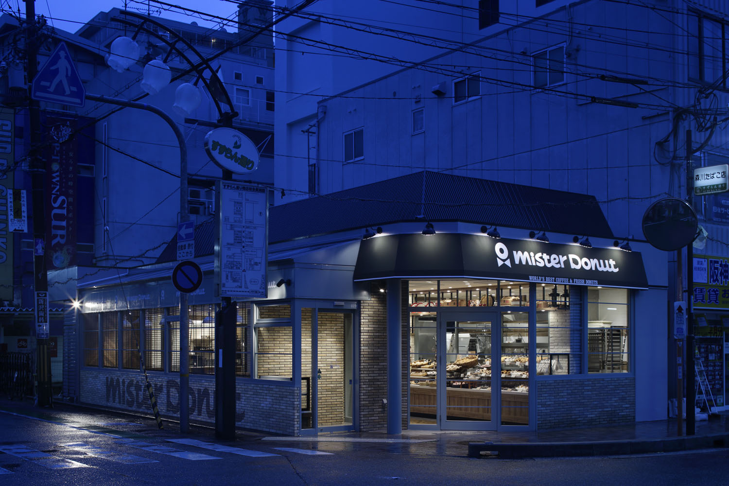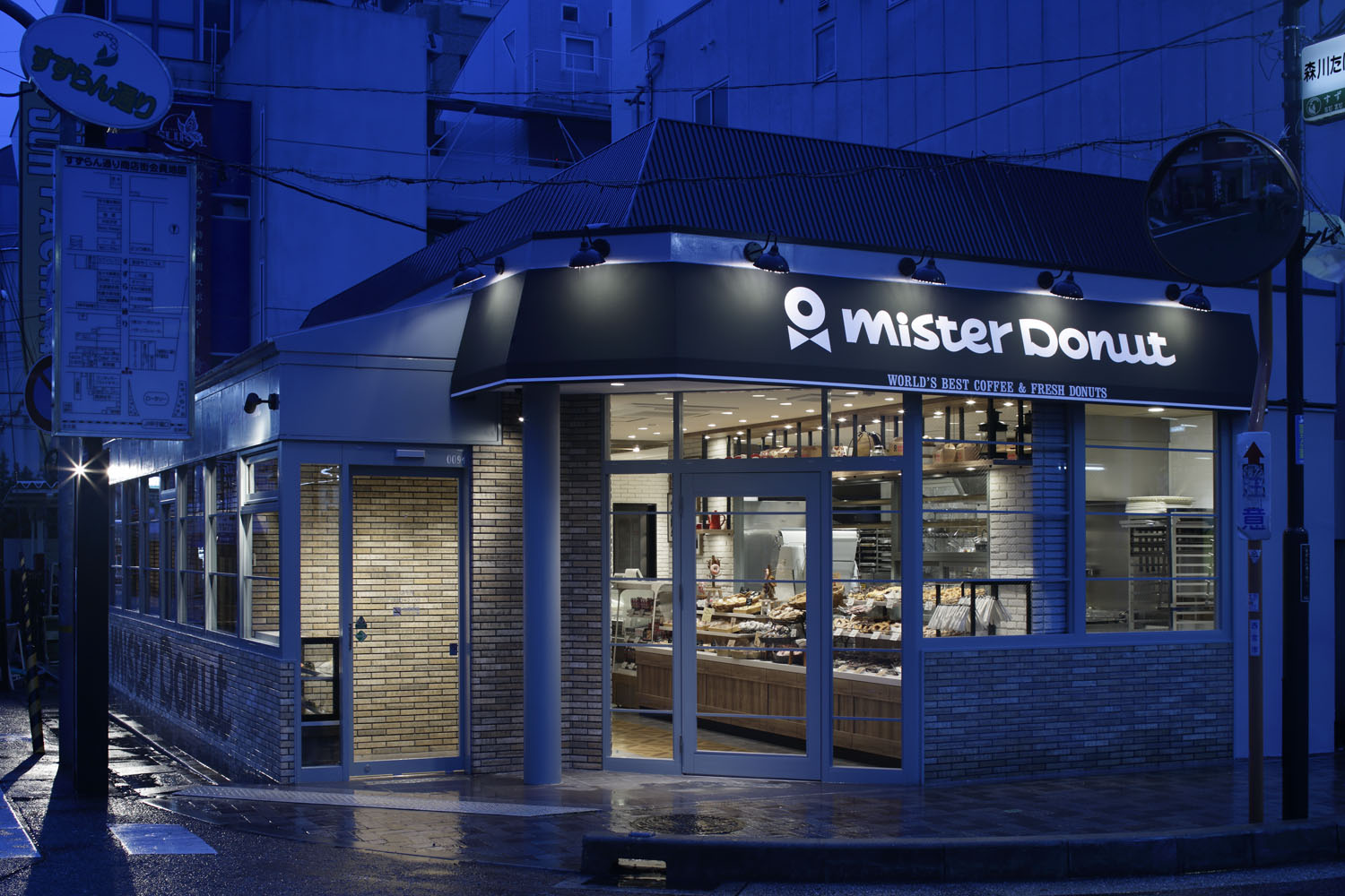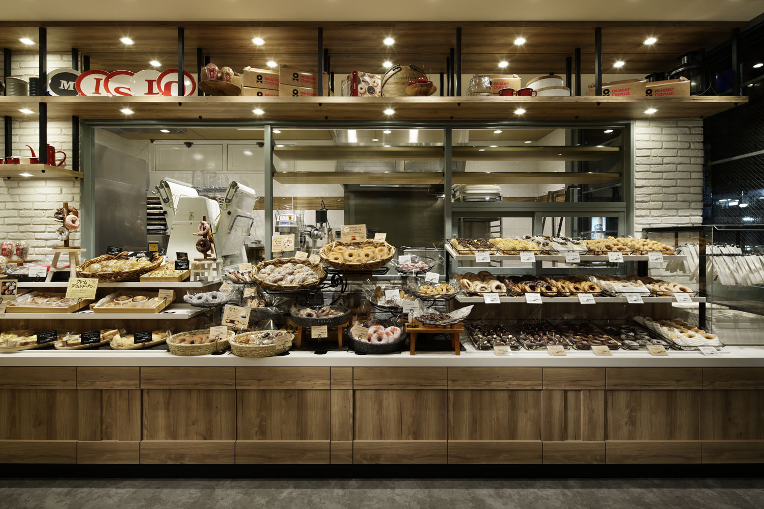 Famously, donuts are the major products of Mister Donut’s mega chain brand. The name Mister Donut is known familiarly as abbreviated “Misudo” among many people. Now after 45 years in business, this brand set out a new approach repositioning as “Sogyo-Gannen” meaning “The first year of business”. With this flow, Misudo has made a refreshing start with the store itself; and this is the first store to open here.