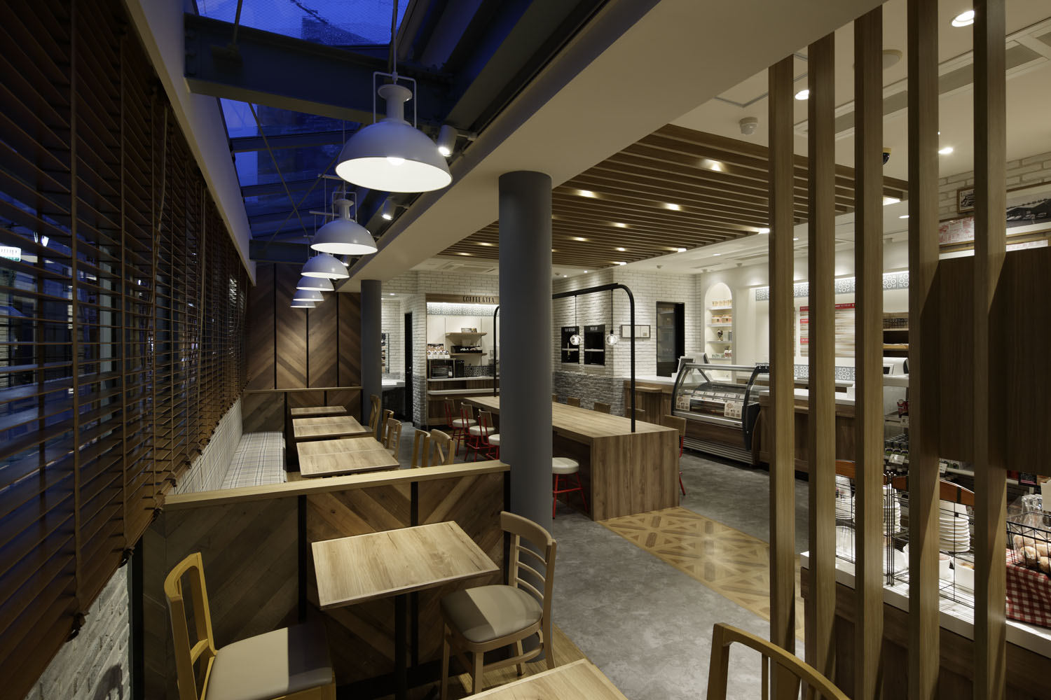 Secondly, we enforced seating variations. Originally, all seats were made equivalent. However we set big tables, pendant lights and display shelves. We also added characters to every area in order to create “selecting seats” through various scenes and customers’ mood.