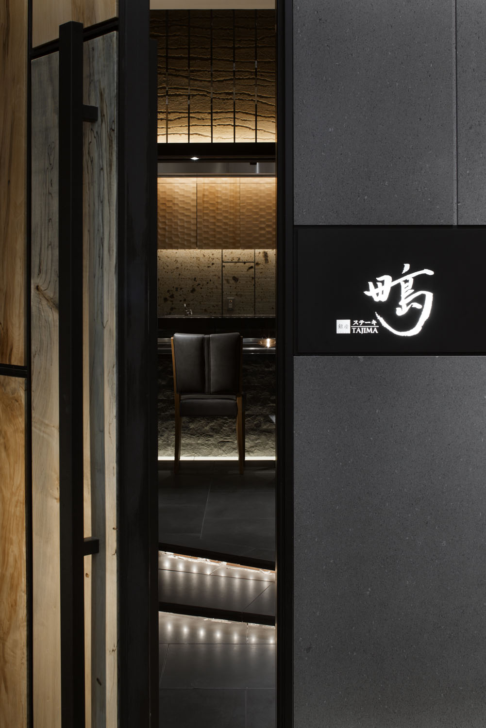 Shiny wooden paneled walls surround the interior along with the counter. These panels exude dignity and the texture create tension and high-quality mood. “Ginza Steak TAJIMA” made its grand opening at Ginza, Tokyo, one of the leading cities in Japan.