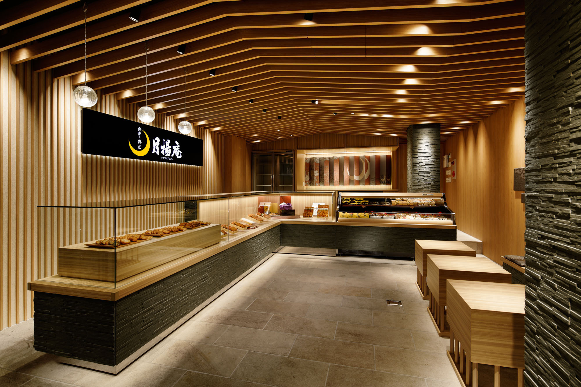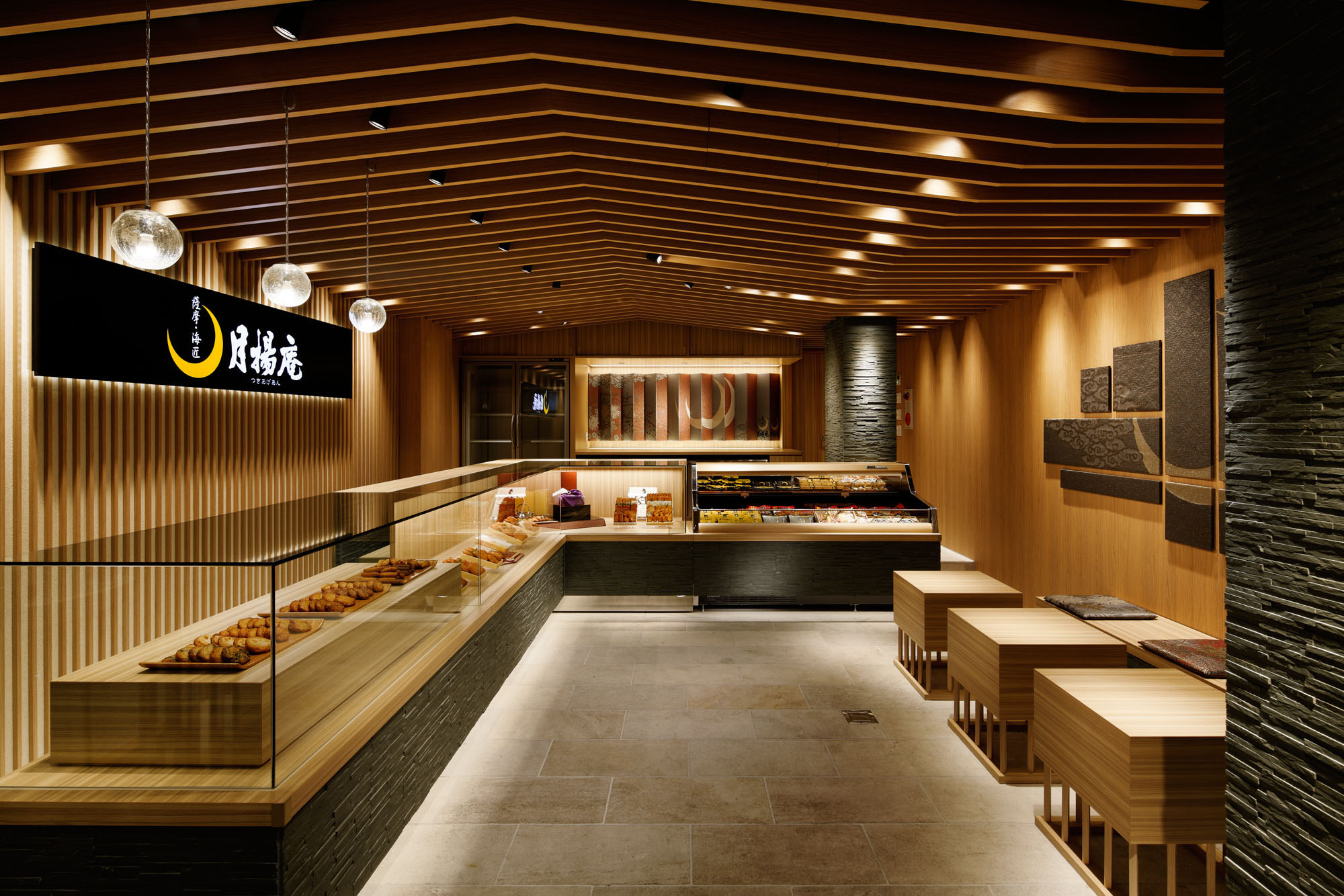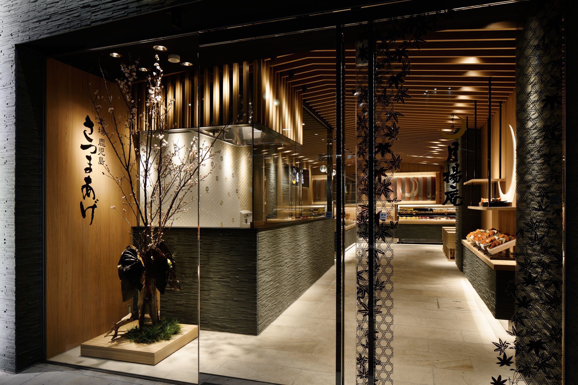 コンセプトは、伝統的な食べ物としての印象が強いさつま揚げを、今の時代性に合わせた表現により提供をすること。設計には、突飛な表現ではなく誠実に和の要素を展開させつつモダンに整えることが求められたことを、行間から読み取っていただけるかと思います。